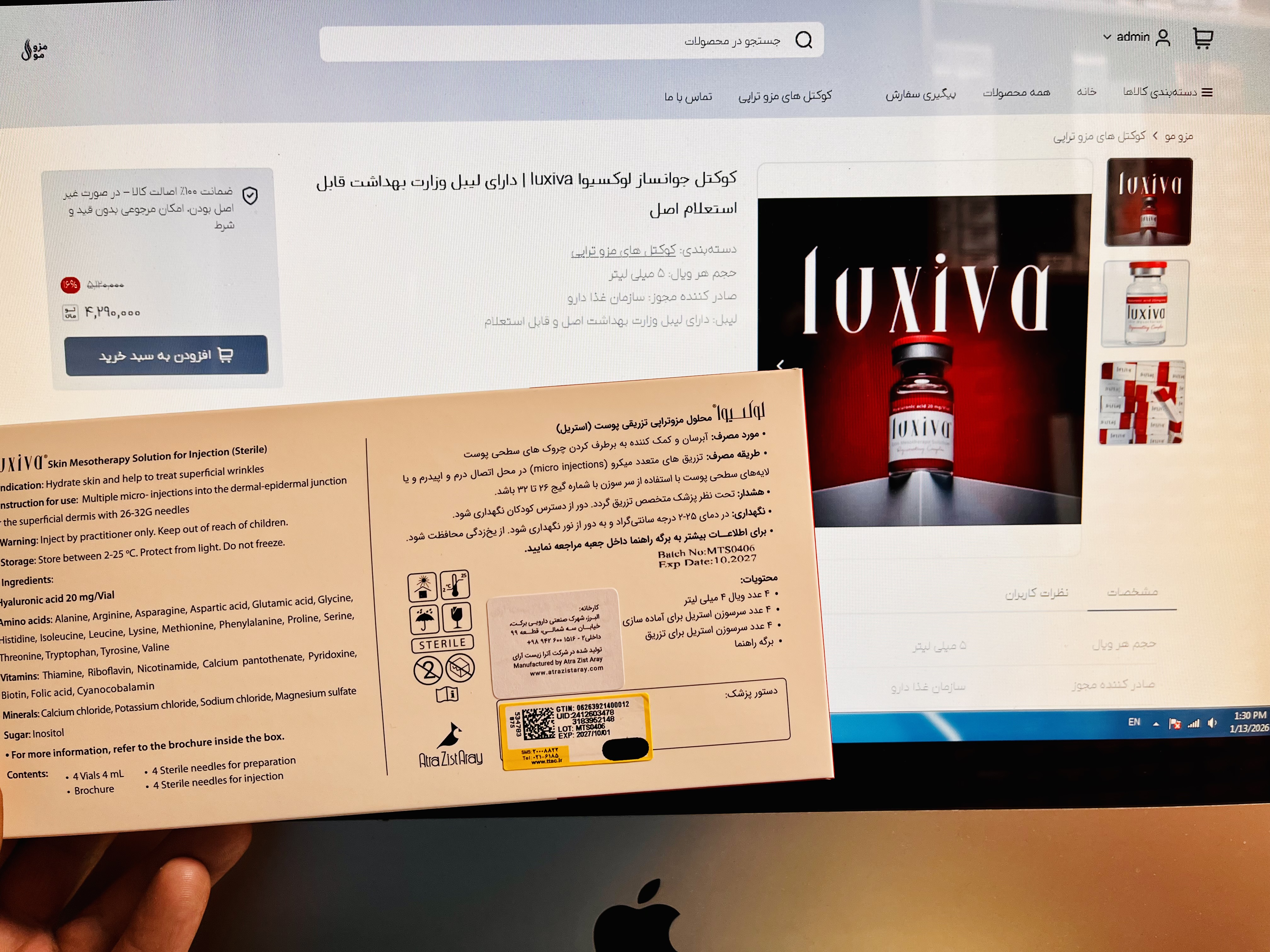 کوکتل مزوژل مزوتراپی لوکسیوا پک ۴ عددی کامل اصل با لیبل وزارت بهداشت سبز